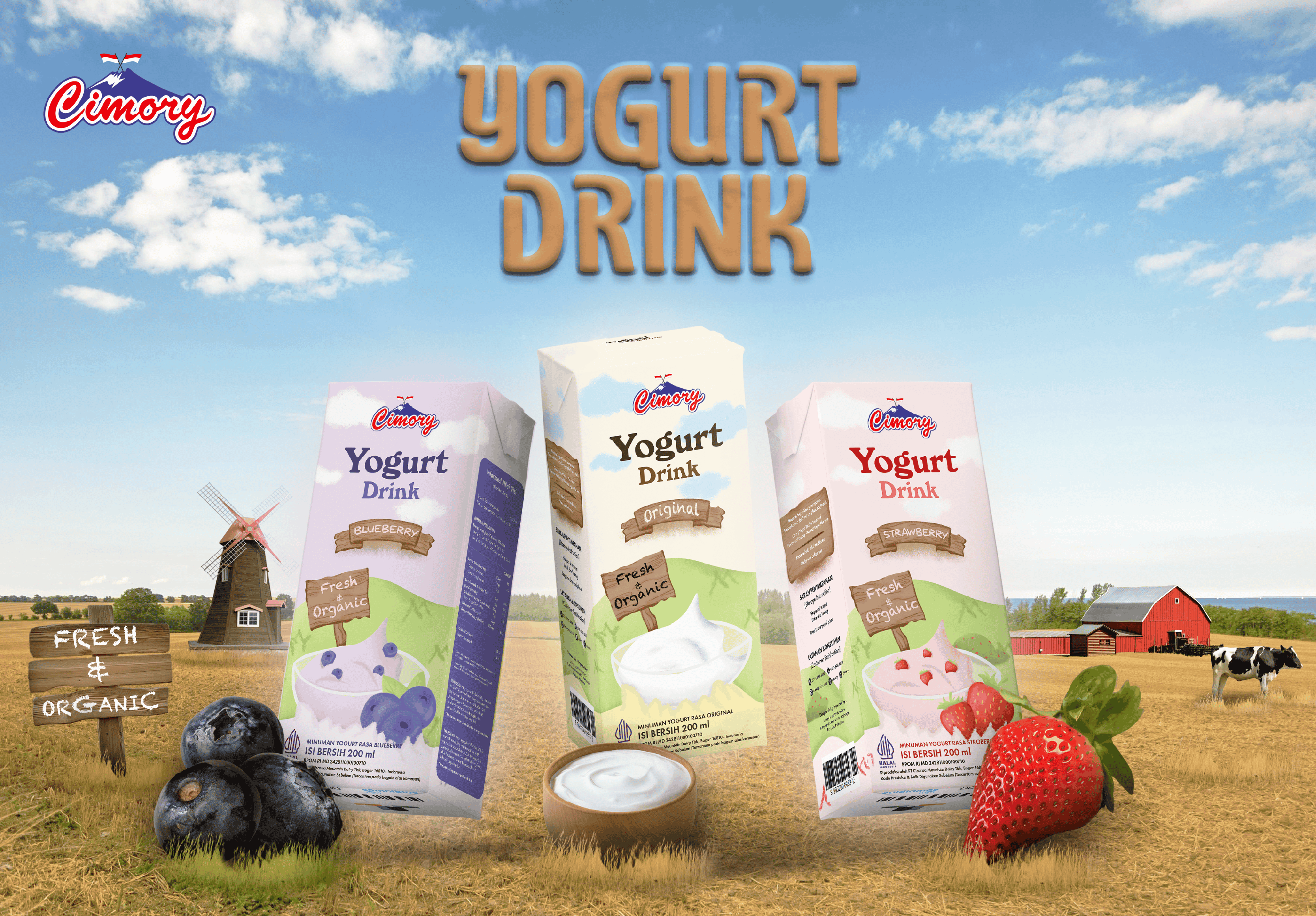 A refreshed packaging design that highlights Cimory's identity as a fresh milk based yogurt drink. The visuals emphasize natural freshness, organic quality, and healthy probiotics in a modern and approachable style, making the product stand out while staying true to its brand essence.