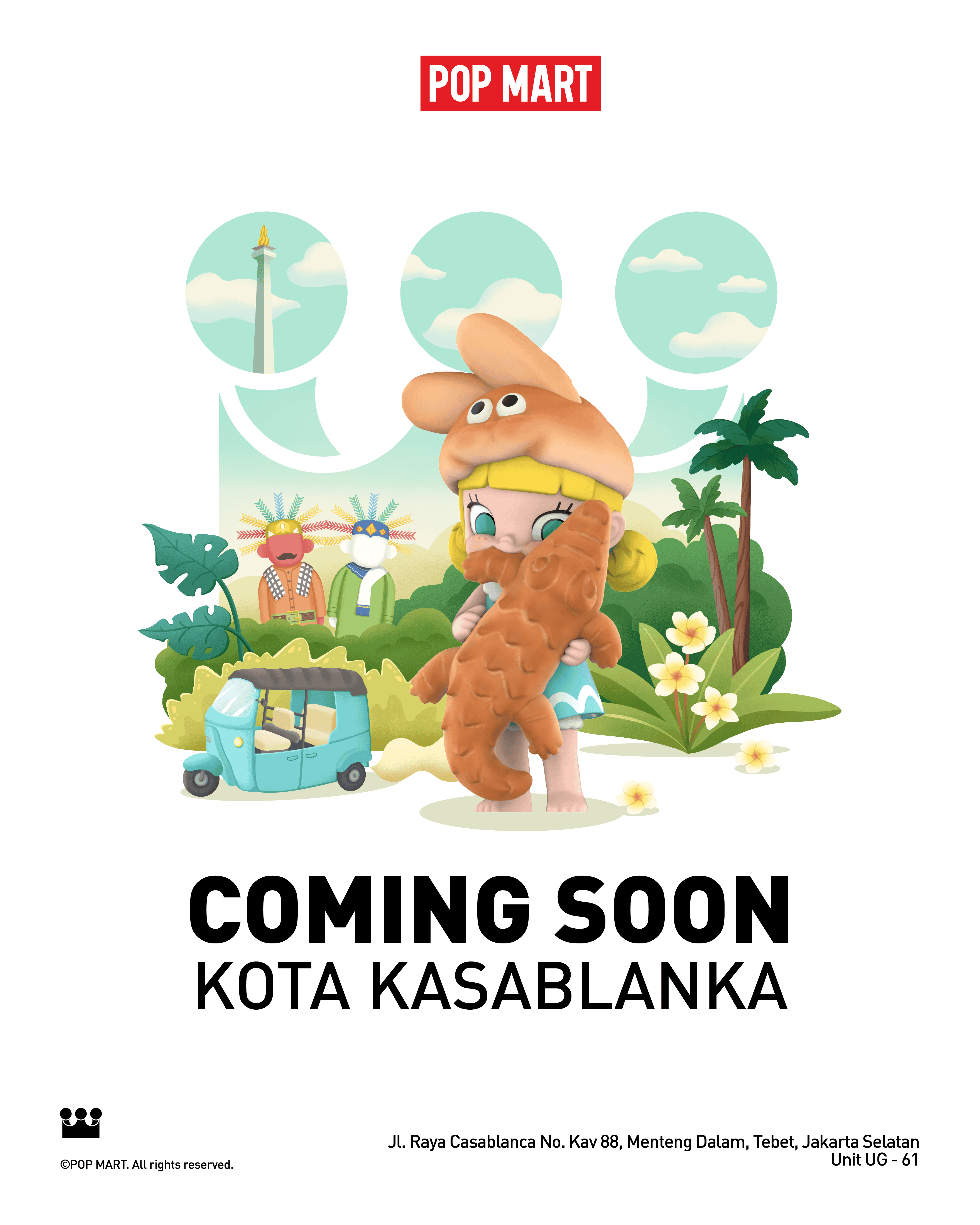 This layout design was created using official Popmart assets, arranged to highlight the brand's playful and vibrant identity. The composition balances character elements with clean typography, making the promotional visual eye-catching and suitable for social media campaigns.